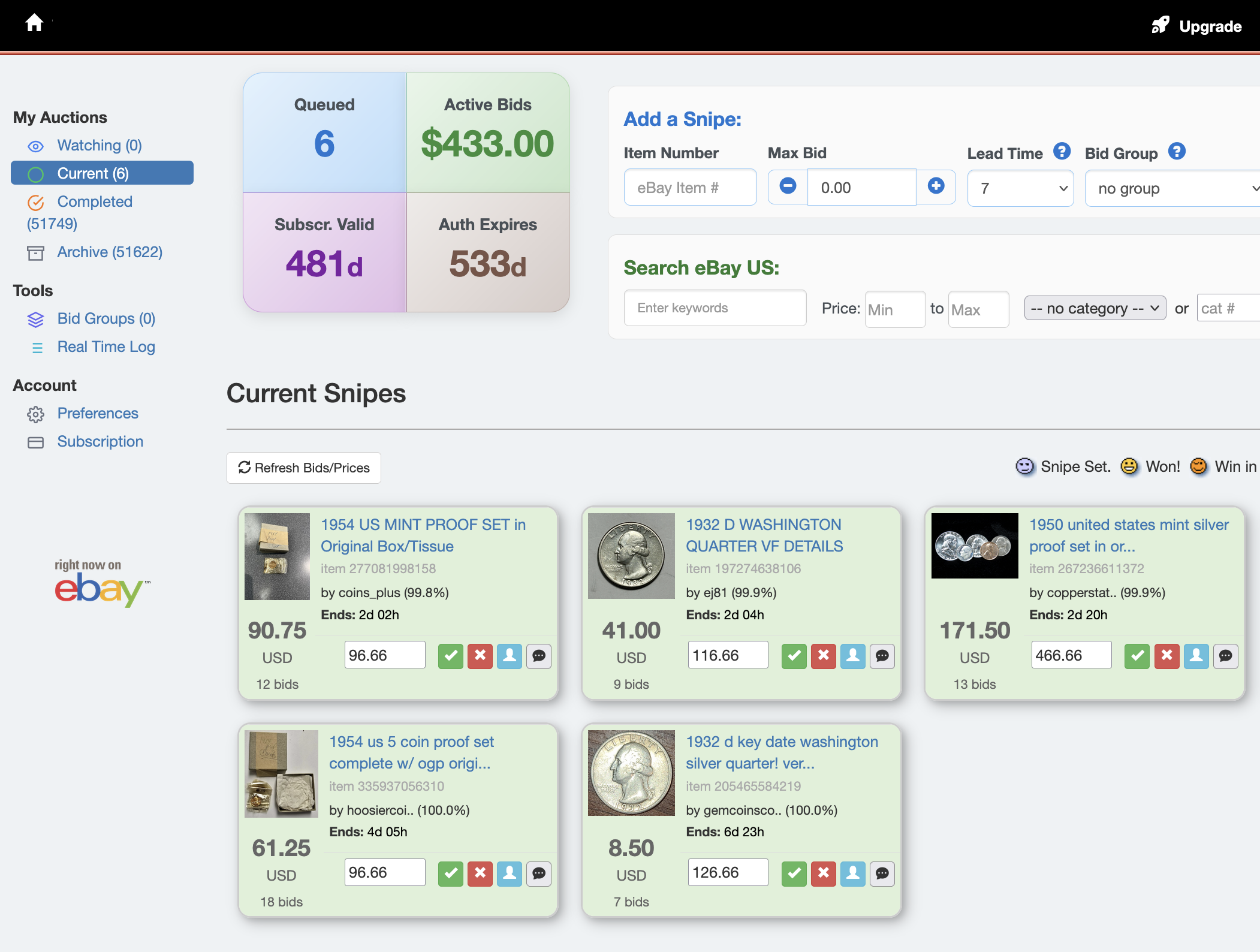 Import your Watch List and mange bids. Customizable views and settings make sniping a breeze.